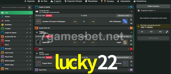 A aposta lucky22 oferece aos jogadores a experiência mais conveniente de apostas em eSports!